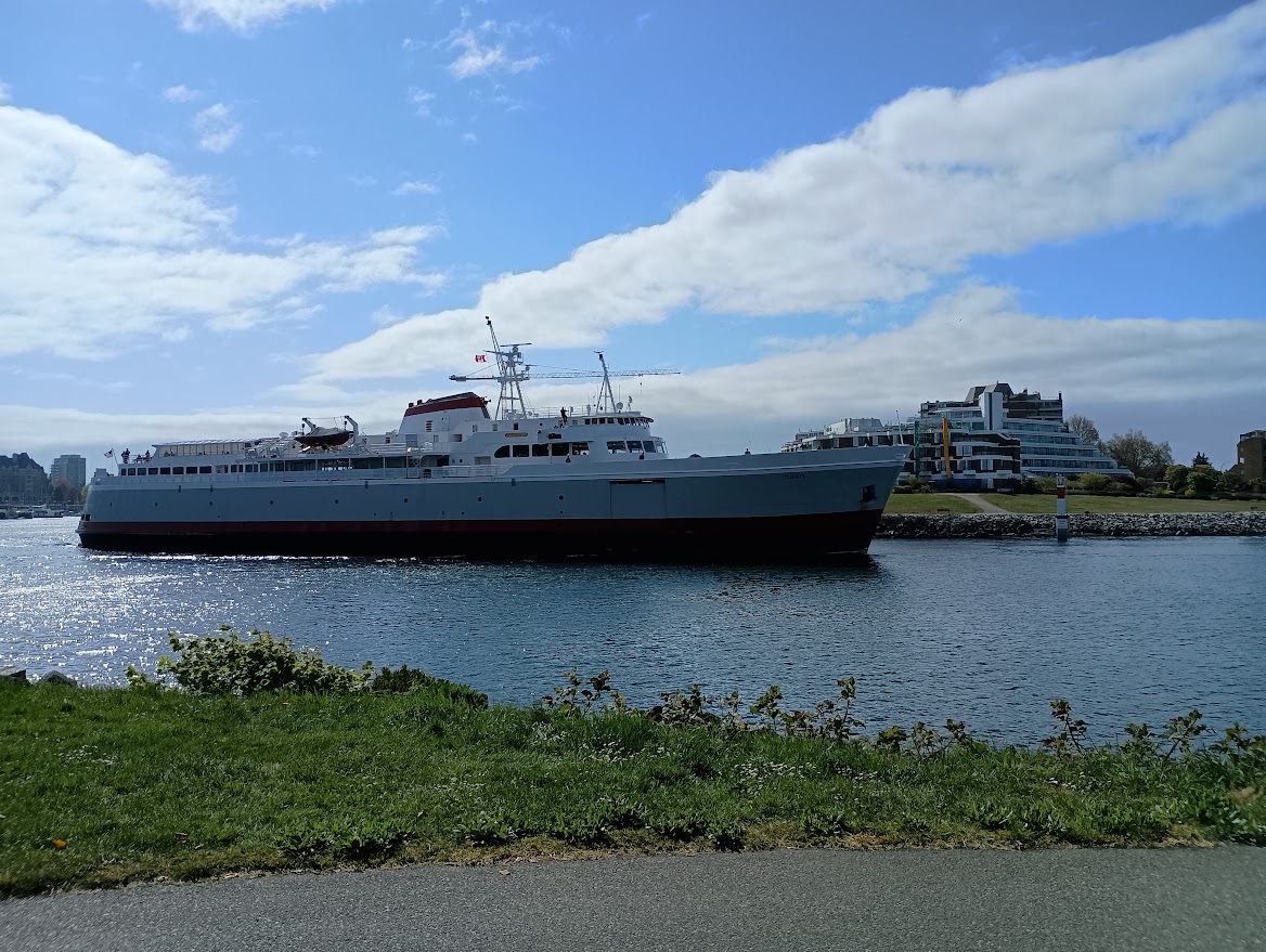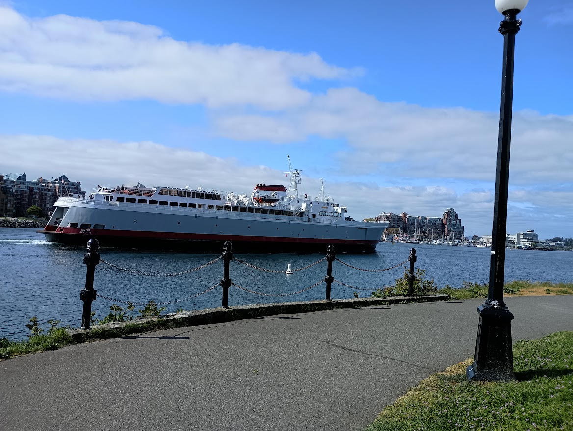 Sunny and cool this morning. I didn't go far because of the wind. It was really blowing out of the south and make it quite cold. When I rode over the bridge the gusts really pushed the bike around. I don't need to fall down at the moment so I stopped at Inner Harbour and took a few pictures of the Coho leaving for Port Angeles.