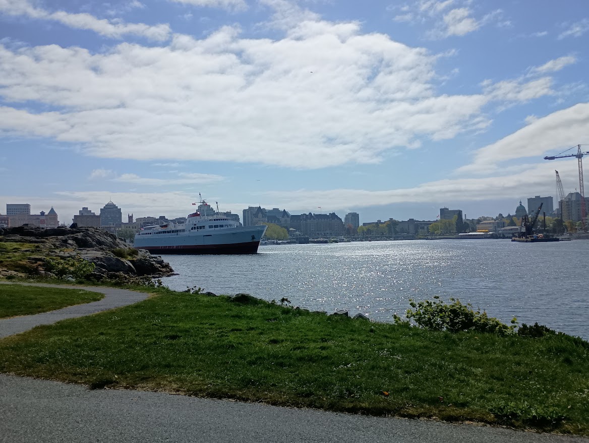 Sunny and cool this morning. I didn't go far because of the wind. It was really blowing out of the south and make it quite cold. When I rode over the bridge the gusts really pushed the bike around. I don't need to fall down at the moment so I stopped at Inner Harbour and took a few pictures of the Coho leaving for Port Angeles.